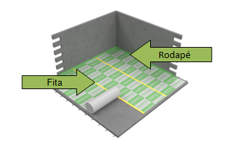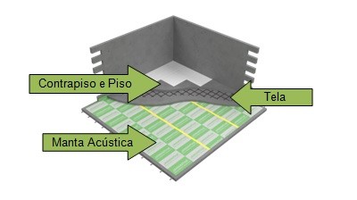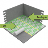 - Nas laterais a altura da Manta acima do contrapiso deve ser compatível com a altura do rodapé, evitando que a onda de impacto sonoro se propague pela parede, atingindo a laje e, consequentemente o pavimento inferior.